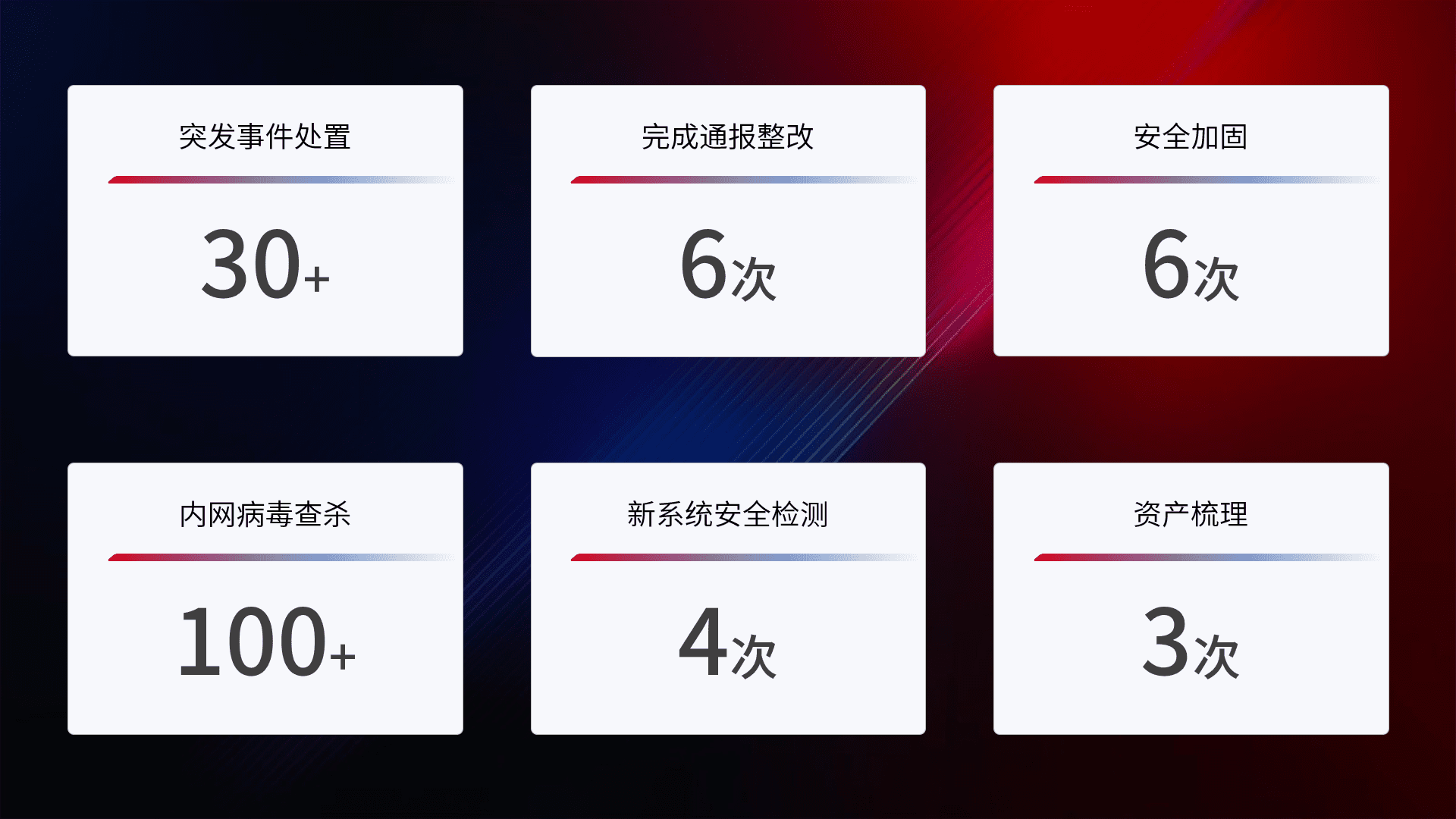 网络安全加固与风险管理:通过技术加固手段,,,,如加强区域隔离,,缩减攻击内网横向移动的范围;优化现有网络安全管理制度,,降低网络威胁暴露面,,,,减少被黑客攻击的可能性。。